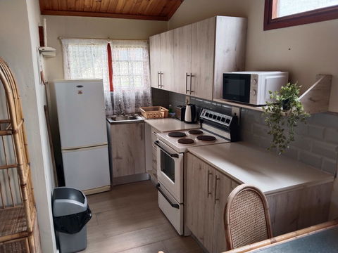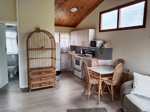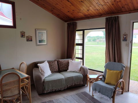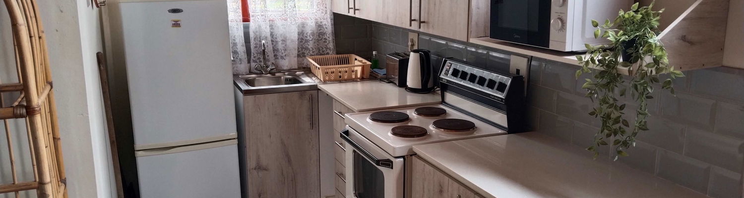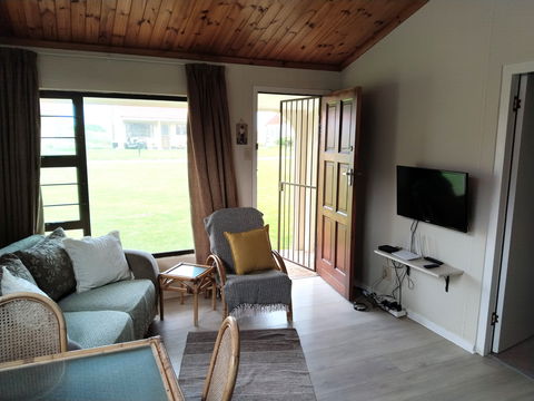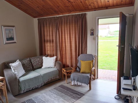 A picturesque and charming cottage perfect for a couple or 4 good friends. Delightful cane furniture and a chocolate brown sofa for late-night TV shows. This cosy cottage can accommodate 4 people (one double bed and 2 single beds). A comfortable bathroom boasts a bath with an overhead shower. Greet the dawn on the sunny patio and wander down to the beach, a short stroll away. Fully self-catering: the cute kitchen nook offers a microwave and a stove. DSTV and Wi-Fi included.