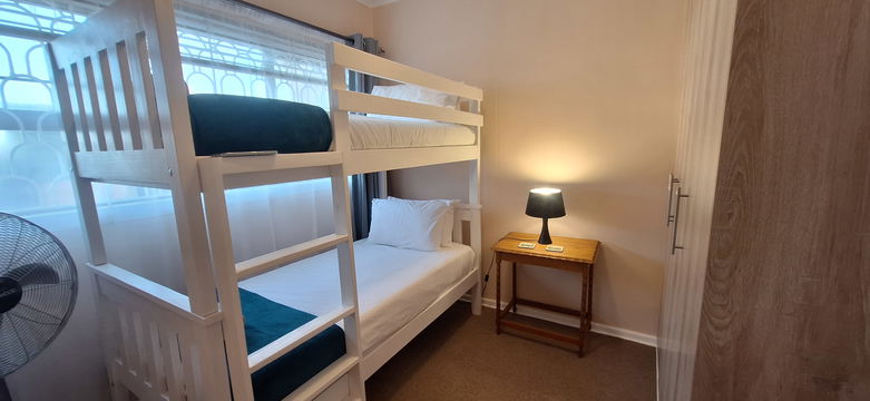 Warm and sunny, this spacious cottage is a one-minute walk from Fish Hoek’s Blue Flag Beach. An inspiring beachside escape that comfortably sleeps 4 to 5 people in 2 tasteful bedrooms (1 double bed and 2 bunk beds) with an additional pullout bed for the 5th person. Bring your family or friends to enjoy self-catering socials in the clean, modern kitchen complete with a convenient central gas stove, a separate oven, microwave and dishwasher.